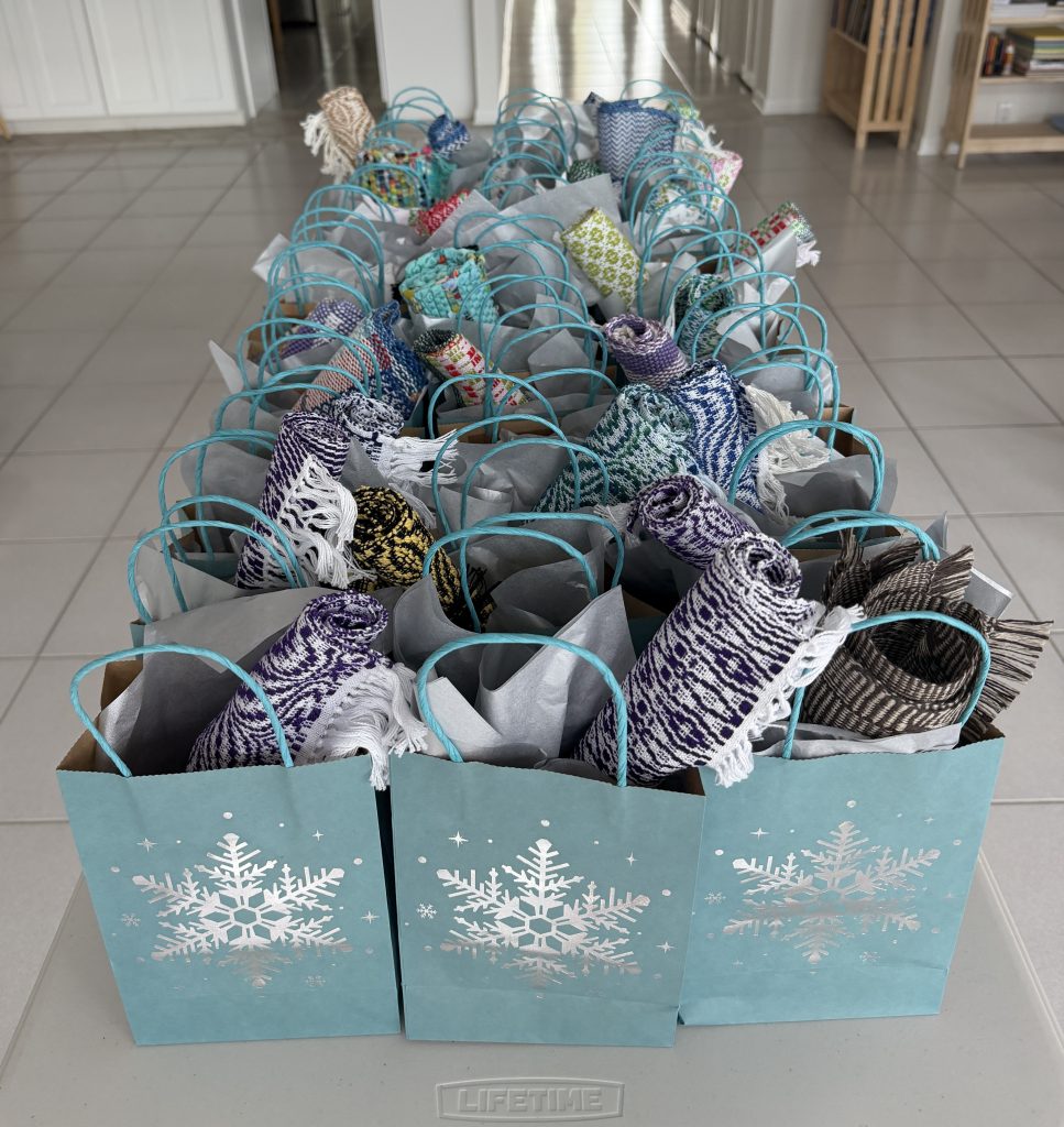 154 place mats were woven and donated to the Meals on Wheels of Sarasota where they were received with delight by the workers!